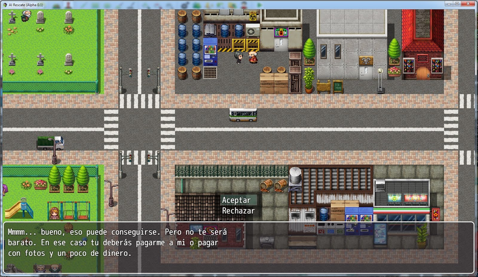 Debemos comprar algunos paquetes de alimentos si queremos pelear con el director, o si conseguimos el spray podemos evitar la pelea. Vamos a la oficina del director y hablamos con él. Después de derrotarlo, revisamos el lugar y llamamos al detective (en este alfa el detective solo sirve para esto). Ahora podemos ir a la entrada de la escuela y volver a casa.